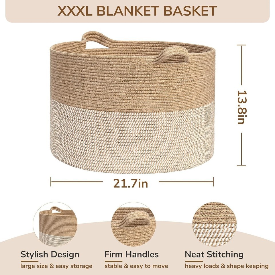 Neutral Design Matches Any Decor: Featuring a chic white and jute design, this blanket basket integrates effortlessly into any room?be it a laundry room, bedroom, bathroom, or living room. It's the perfect complement to modern, boho, or farmhouse decor.