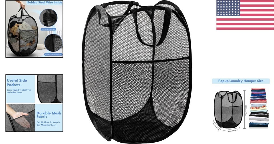 Durable Pop Up Laundry Basket with Extra Pocket - Ideal for Homes & Travel