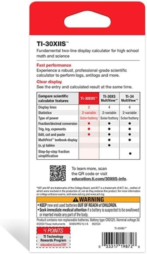 Advanced TI-30XIIS Scientific Calculator: Lightweight, Approved for SAT ACT