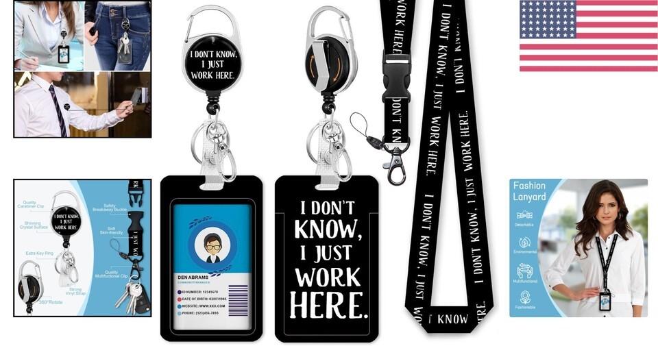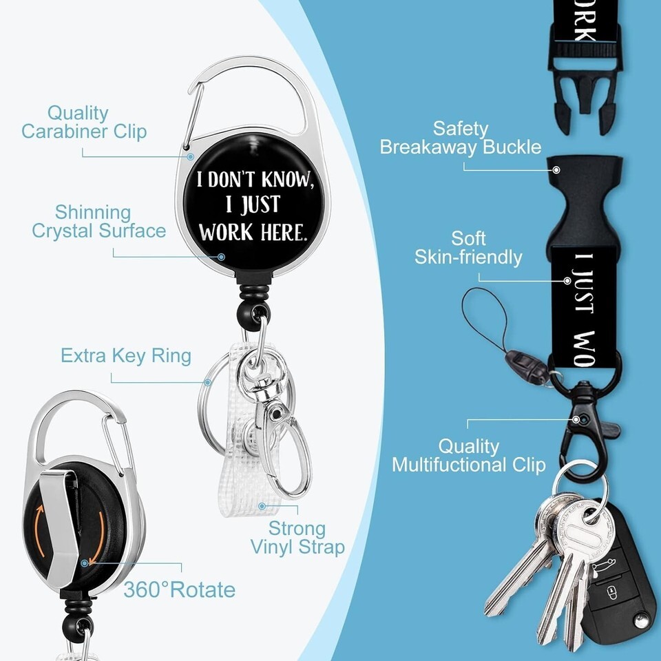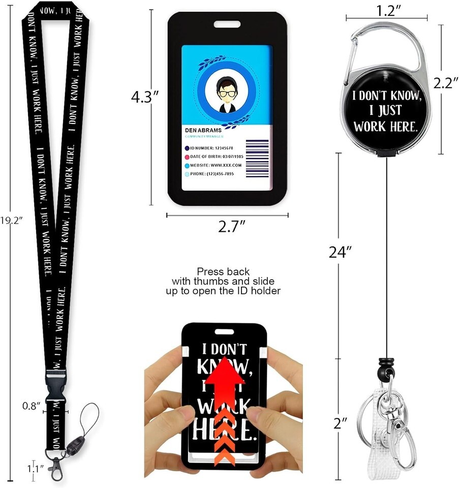 Unique Design: Featuring a light-hearted message, "I Don't Know I Just Work Here", this badge holder adds personality to your workday.