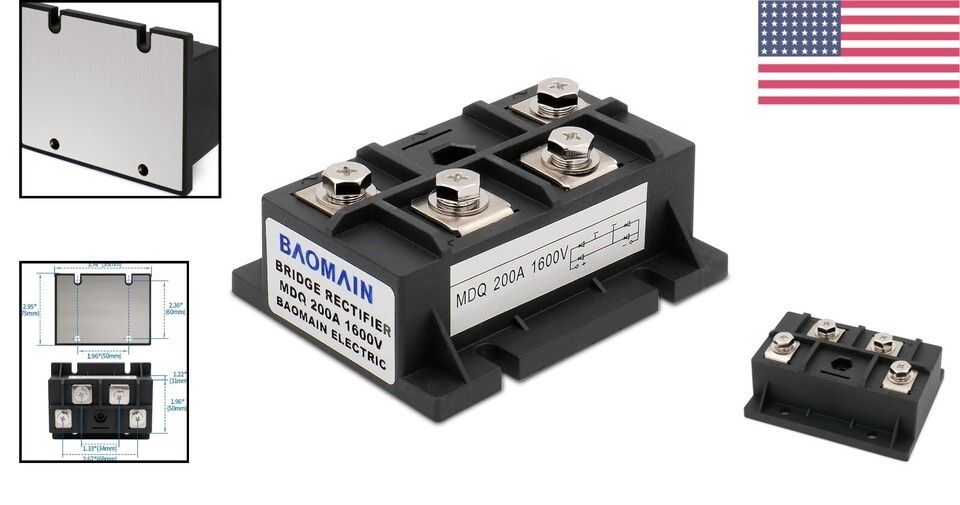 Compact 200A Bridge Rectifier with 4-Terminal Design for Easy Installation