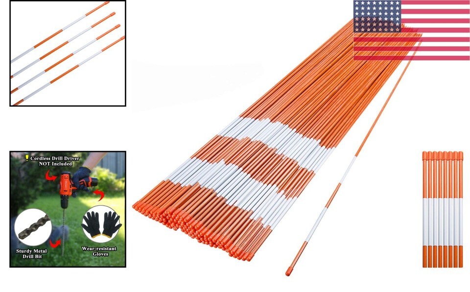 Complete 100PC Driveway Marker Kit - 48-Inch Snow Stakes with Gloves Drill Bit