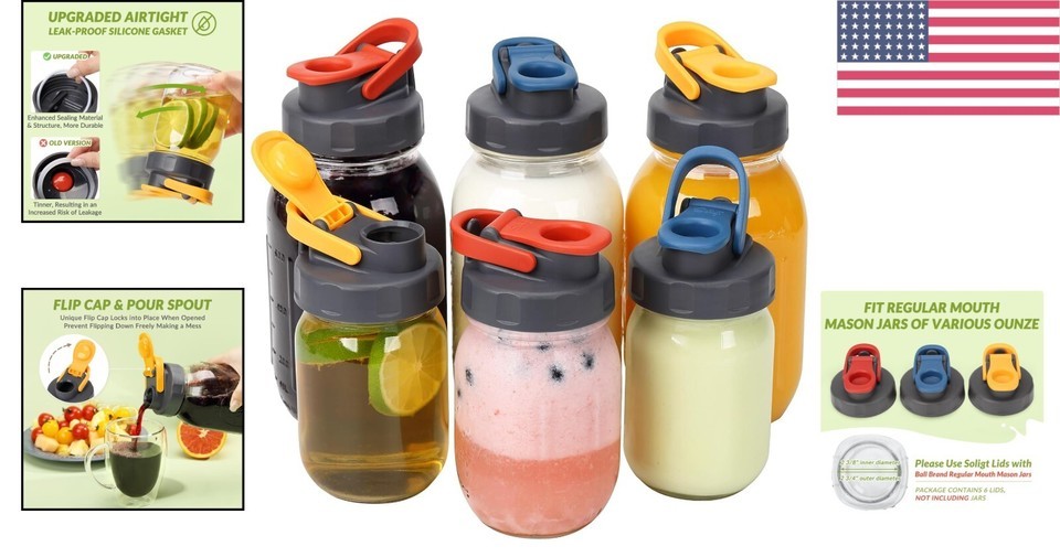 Elevate your mason jar game with our 6 BPA-Free Pour Spout Lids, specifically designed for ease of use and top-notch performance. Whether you?re looking to store flavorful dressings, refreshing beverages, or delicious snacks, our innovative lids offer a leak-proof solution. Each lid not only provides durability but also adds a colorful touch to your kitchen essentials. Make food storage sleek and convenient?order your value pack today and experience the difference!