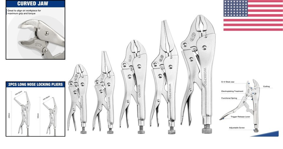 Unlock the power of precision and durability with our versatile 5-piece locking pliers set, designed for both professionals and DIY enthusiasts seeking the utmost in quality and performance.
