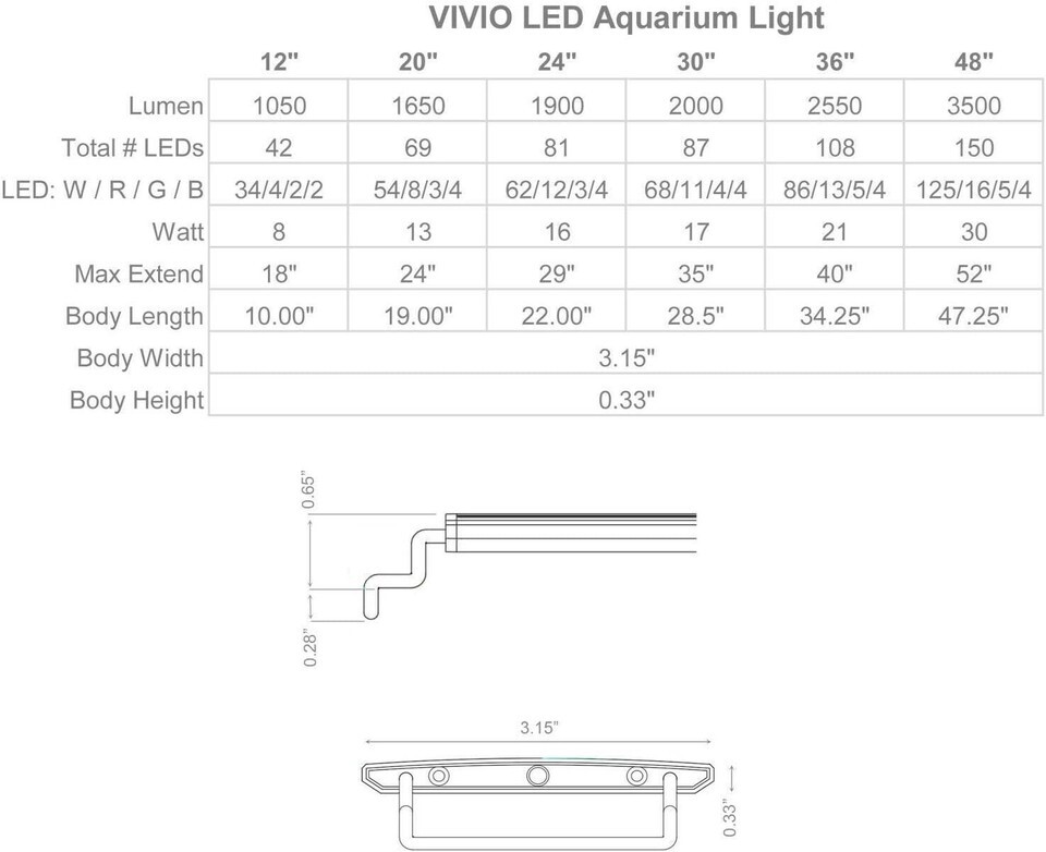 Sleek Vivio Dimmable LED Light 12-18'' for Freshwater Aquariums - Easy Install
