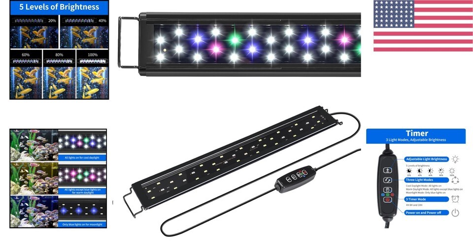 Adjustable Brightness LED Light for 18-24” Aquariums - Timer & Waterproof Design