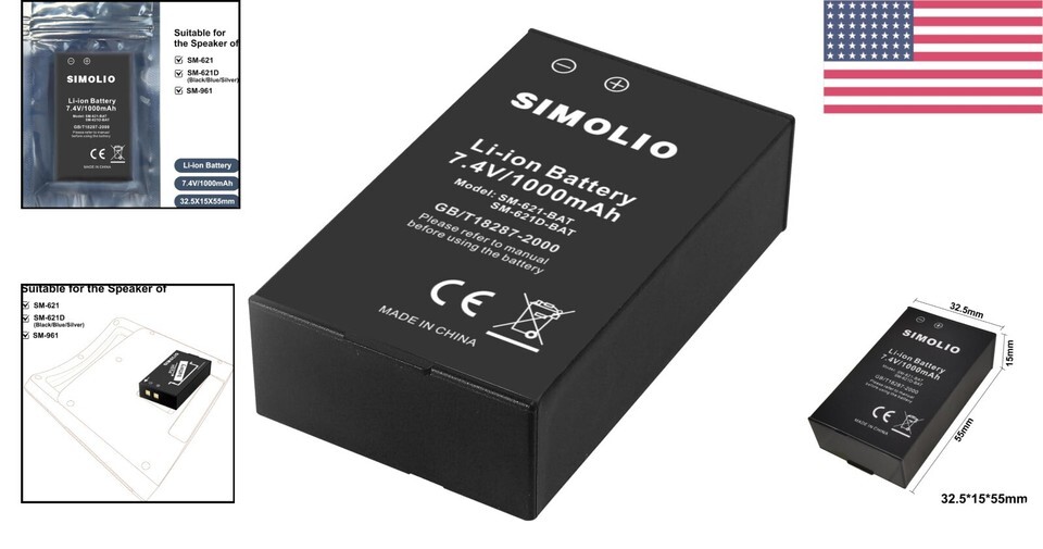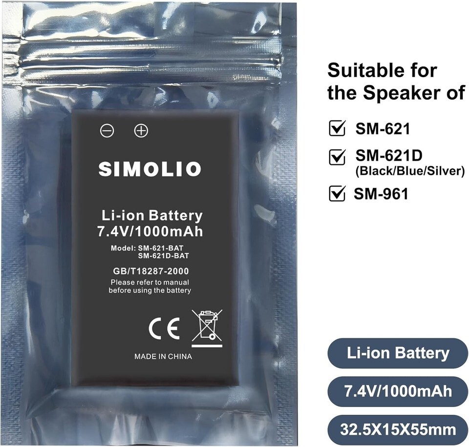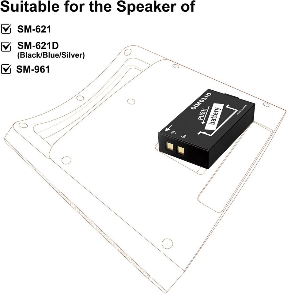 Rechargeable Li-ion Battery for Simolio SM-621/SM-621D Speakers, 1000mAH