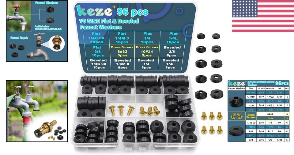 This kit not only saves you time and effort but also prevents unnecessarily costly repairs or replacements of faucets, making it an essential addition to any household. Don't let a small leak disrupt your day?order your Assorted Faucet Washer Kit today and enjoy peace of mind knowing you're prepared for any faucet emergency!