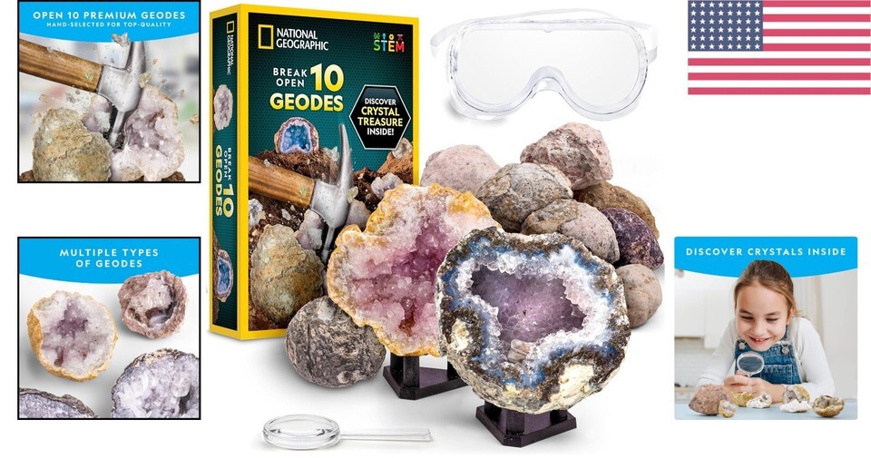 Break Your Own Geodes! 10 Premium Geodes with Goggles & Educational Guide