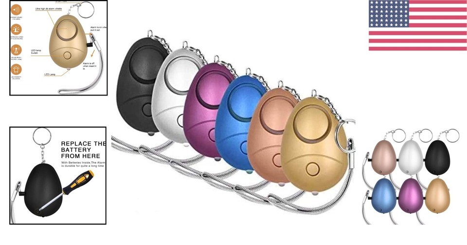 140dB Safe Sound Personal Alarm - 6 Pack Keychain with LED Lights Batteries