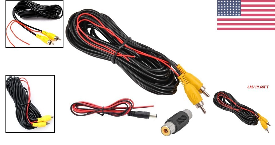 Backup Camera RCA Cable - 20FT Video Cable with Detection Wire and Power Supply