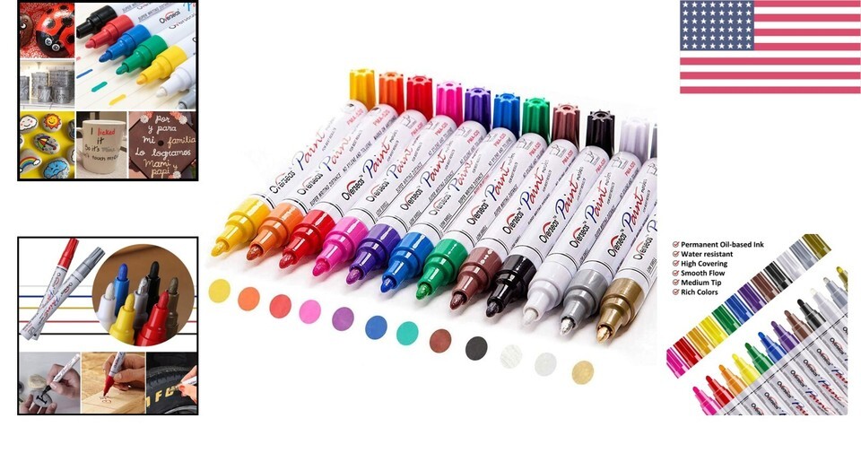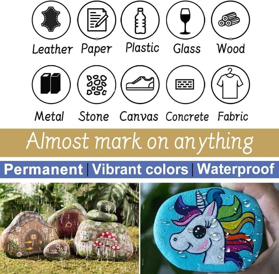 Premium Oil-Based Paint Markers - 12 Quick Dry Colors for Rocks, Glass Fabric