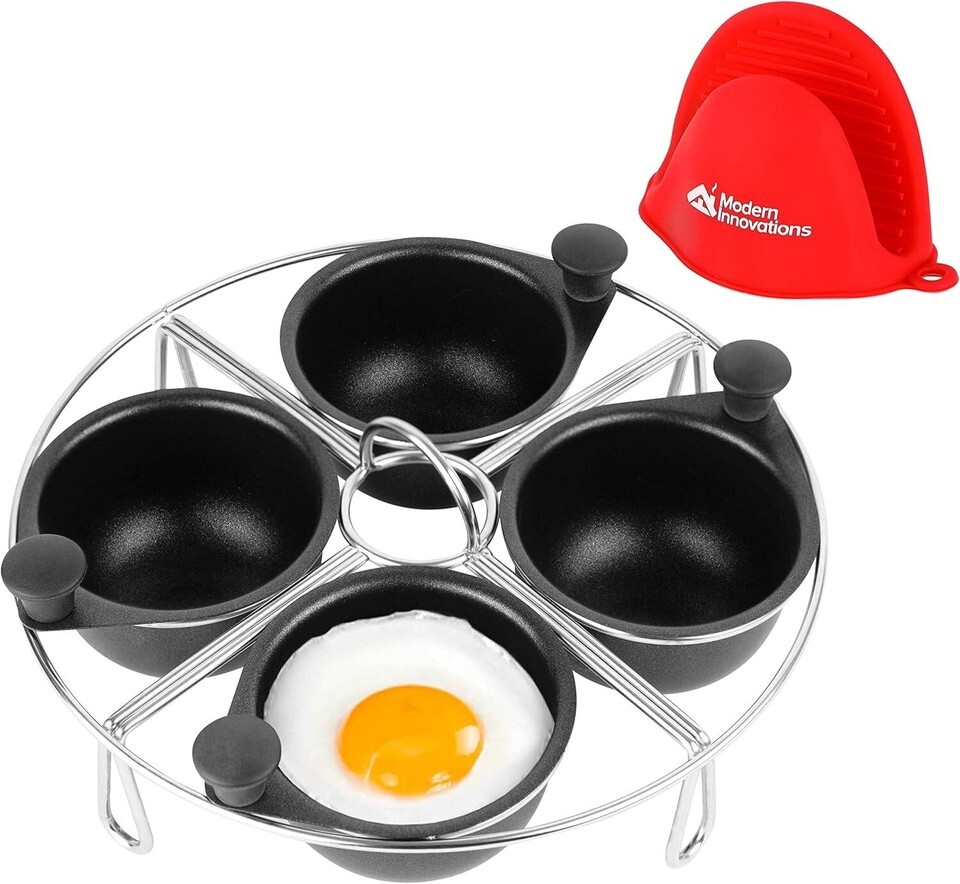 Stainless Steel 4-Cup Egg Poacher Tray with Silicone Mitt - Dishwasher Safe