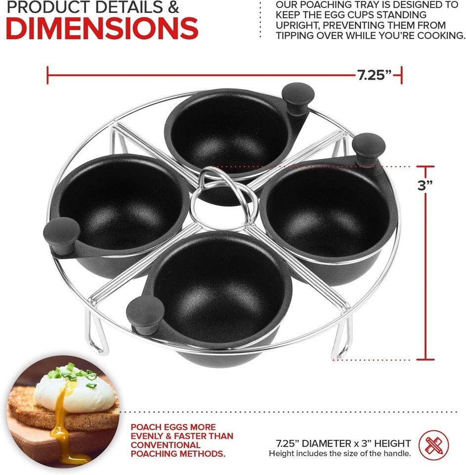 Non-Stick Technology: Each cup features a 100% PFOA-Free, non-stick coating that allows for effortless release of your perfectly poached eggs.