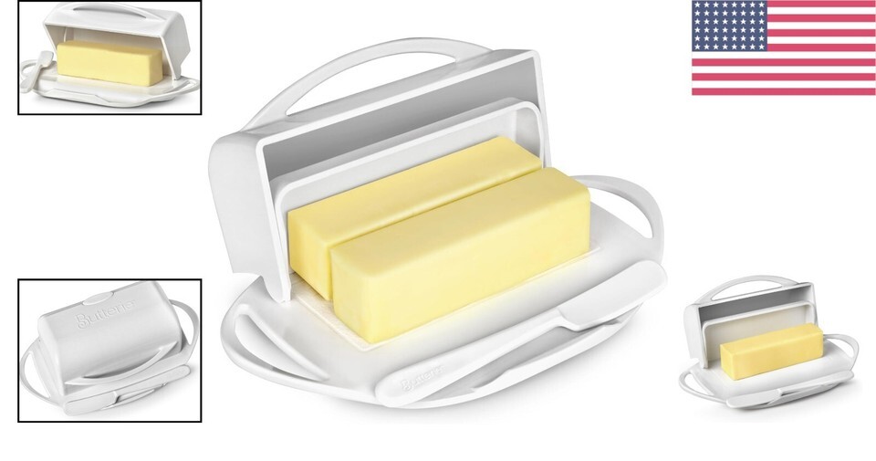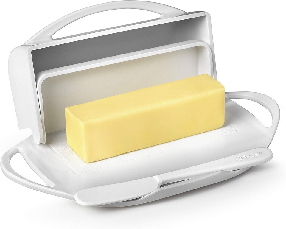 Compact 8 Oz. Flip-Top Butter Dish - Includes Butter Knife - Easy Clean Design