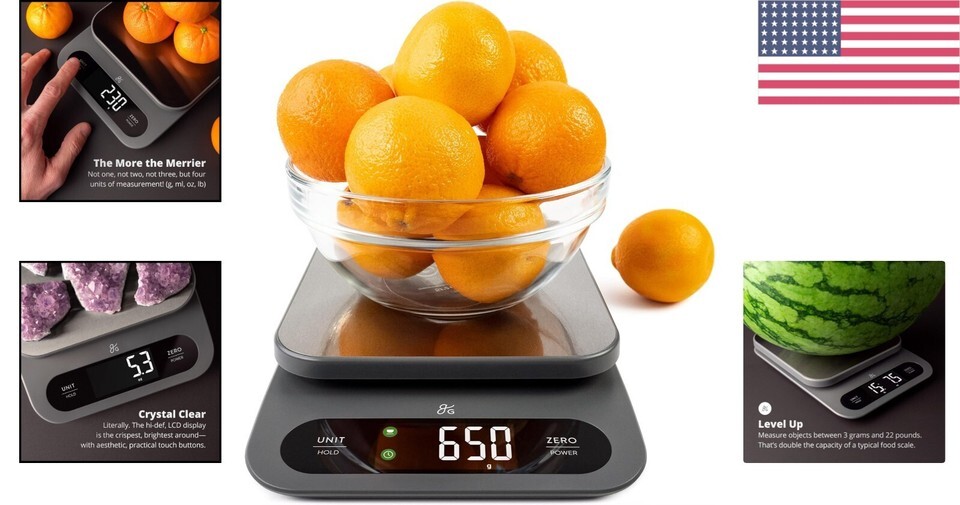 This kitchen scale weighs up to 22 pounds, making it the perfect companion for bulk food measurements and prep. Whether it's for culinary creations or household chores, this scale will never let you down.