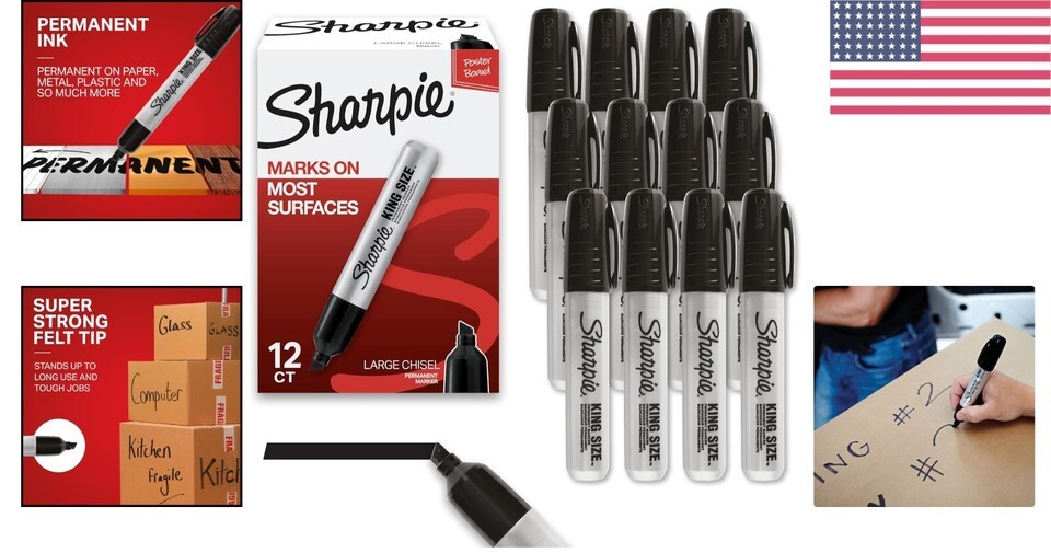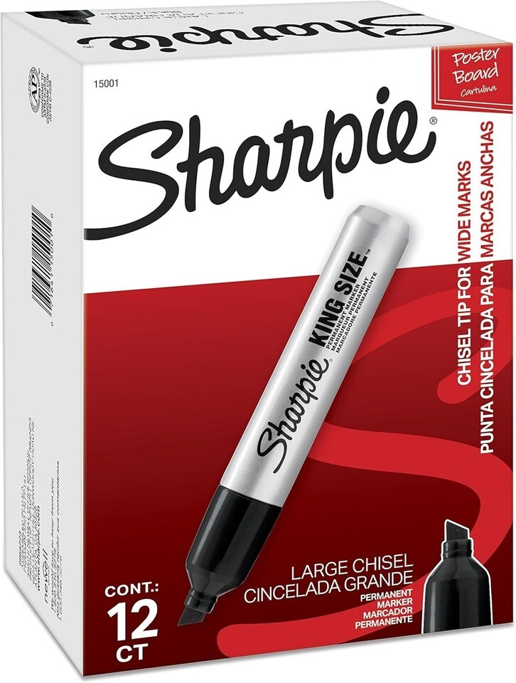 King Size Permanent Markers - Extra Wide Chisel Tip, 12 Count for Industrial Use