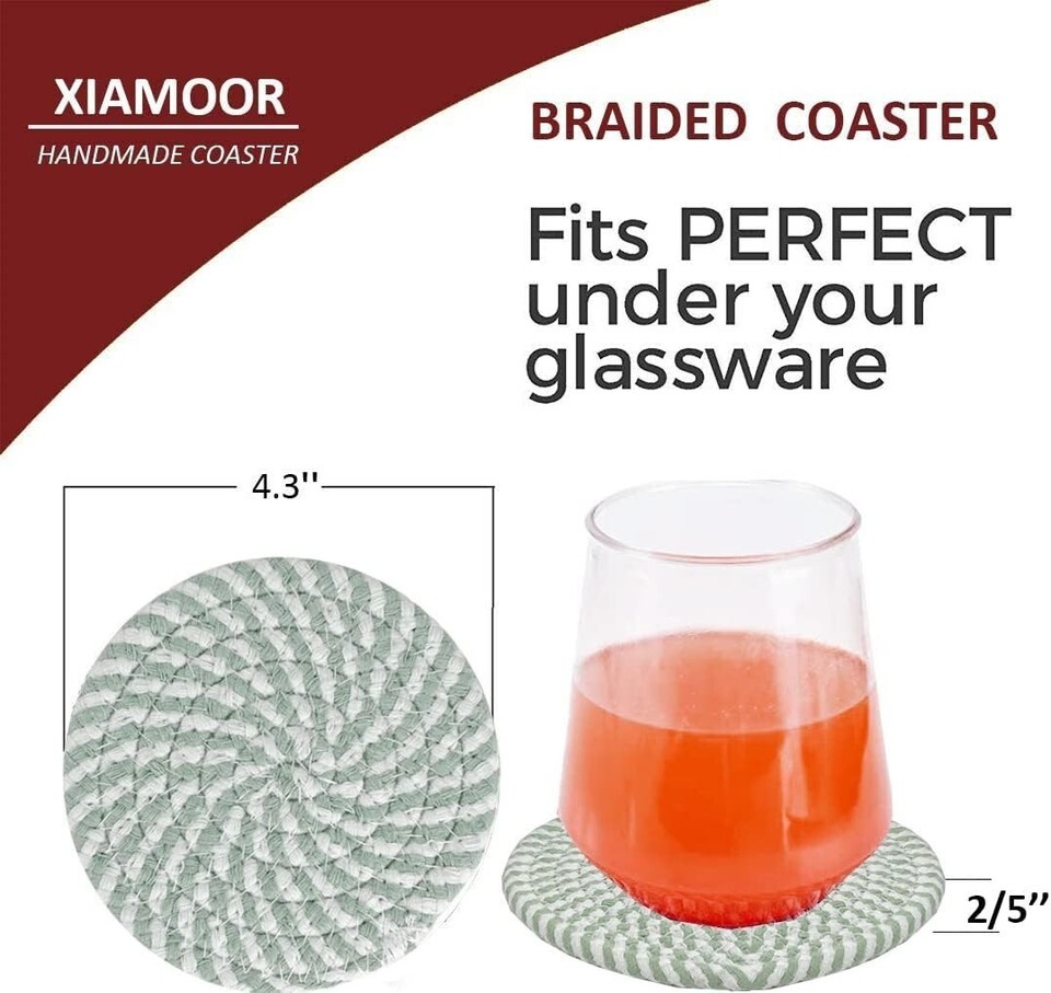 Transform your living space with our beautifully crafted 4.3" Super Absorbent Braided Coasters. Each piece is not just a practical accessory; it is a testament to your commitment to quality and style. No more stains on your precious furniture or slippery drinks ? these coasters ensure a clean, safe, and elegant solution.