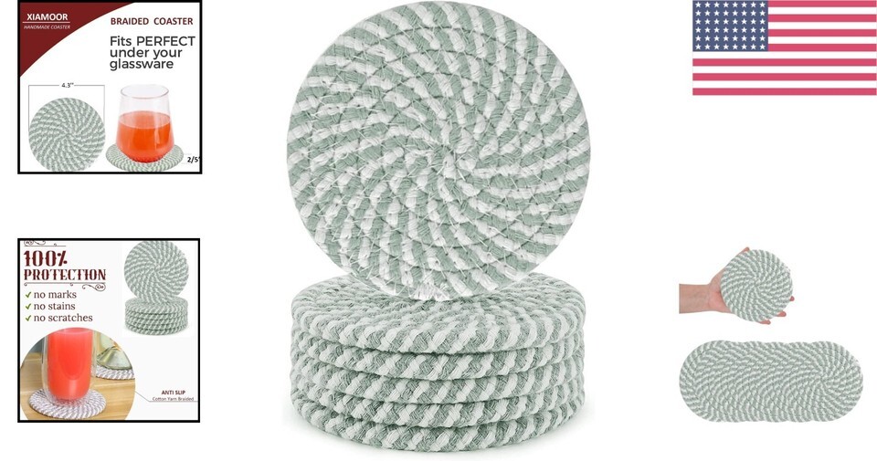 6 Pack 4.3 Inch Super Absorbent Braided Coasters - Perfect for Gift Giving