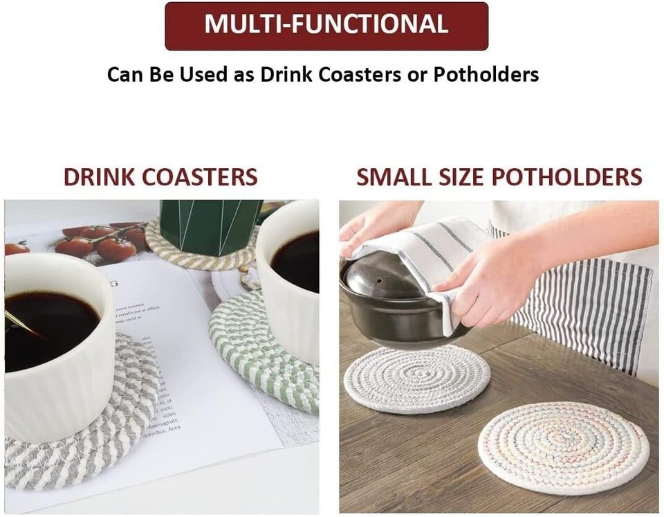 MULTI-FUNCTIONAL EASY TO CLEAN: Our coasters double as potholders, proving their versatility. Cleaning is a breeze ? simply rinse with water and hang to dry.
