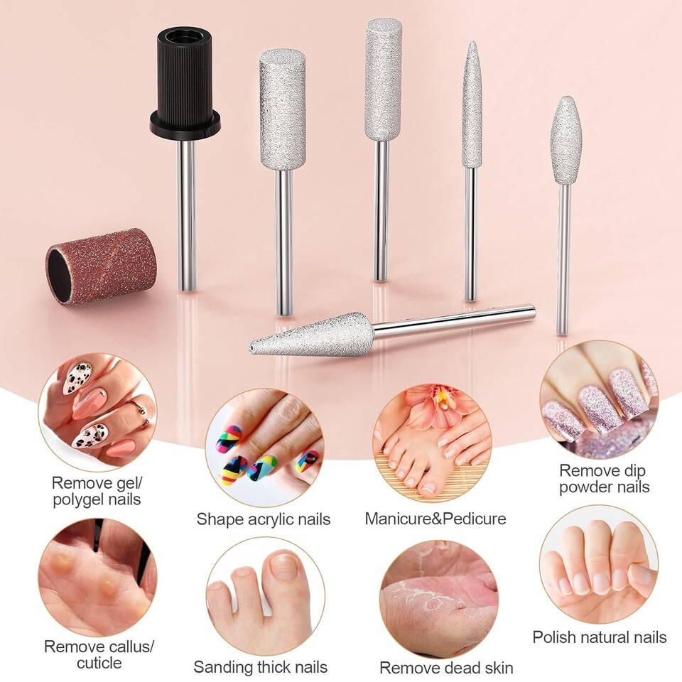 Set Includes: Nail Drill Bits Set,6 replaceable nail drill bits,26 sanding bands,Nail art brush,100/180 nail files