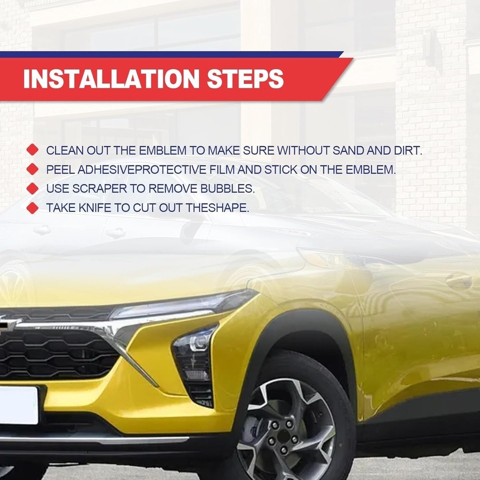 Installation Steps: Clean the badge, peel off the film, securely attach the logo, and use a scraper to eliminate bubbles.