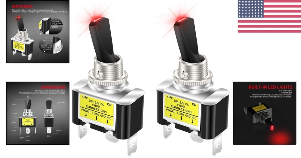 Upgrade your vehicle's electrical system with our innovative Compact 30 Amp Lighted Toggle Switch. Not only does it provide a reliable way to control your lights and accessories with ease, but the stylish LED indicator enhances visibility, making it a functional and attractive addition to your car. Enjoy the peace of mind that comes with high-quality components and a versatile design that meets various automotive needs.