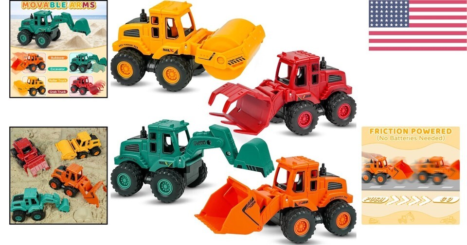 4-Pack Toddler Construction Trucks with Push-and-Go Trucks, Perfect for Ages 3+