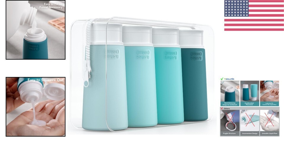 100% Leakproof Travel Essentials: Featuring a three-layer leak-proof system, our travel bottles offer a tightly sealed environment, ensuring peace of mind during your travels.