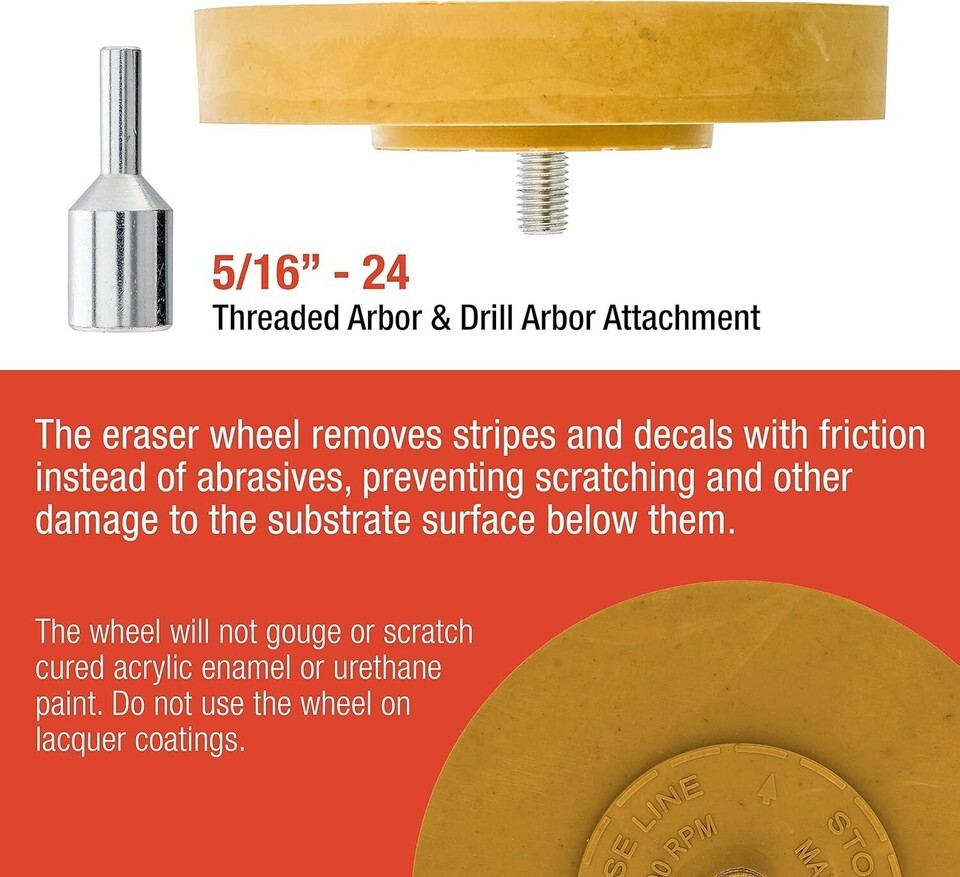 Multi-Surface Rubber Eraser Wheel - Safe Decal Removal for Cars, Signs, and More