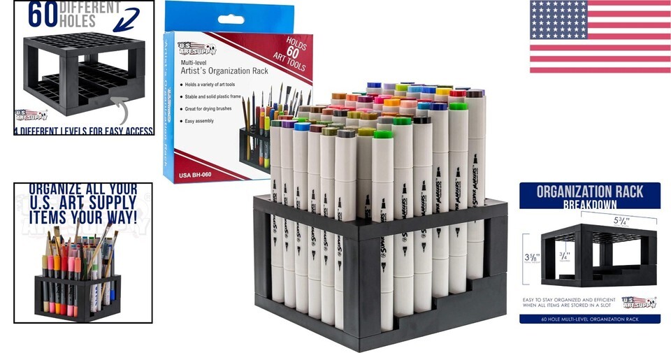 Durable Multi-Level Art Supply Organizer - 60-Hole Holder for Efficient Storage