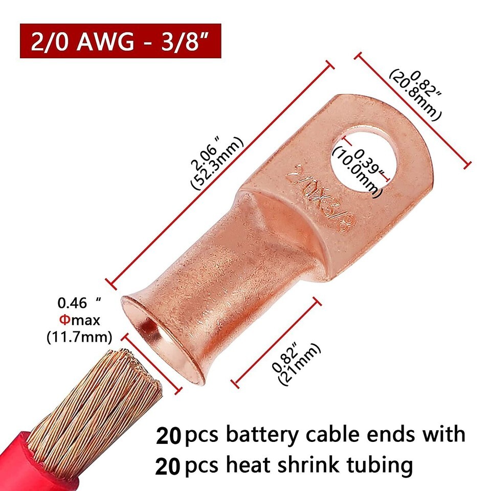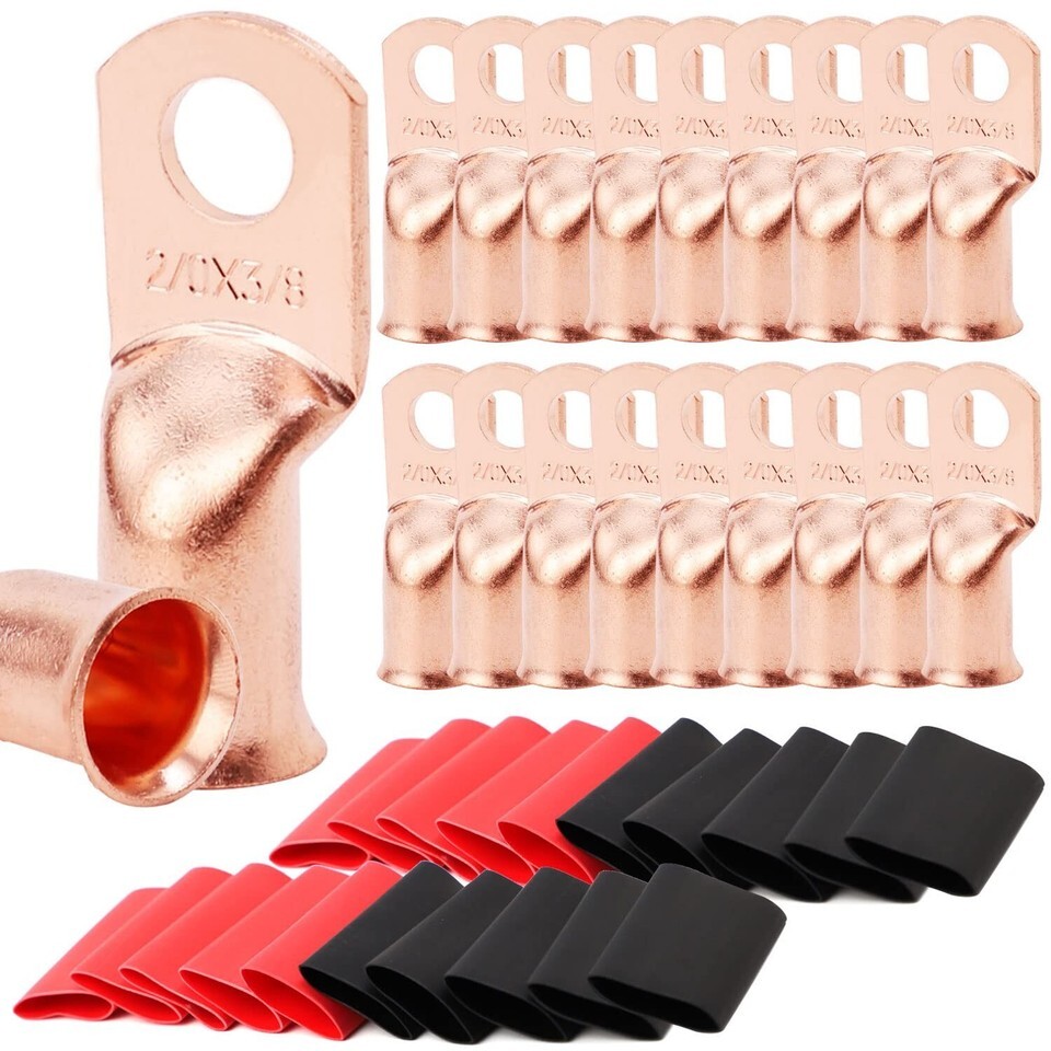 Premium 2/0 AWG Copper Battery Terminal Connectors with Durable Shrink Tubing