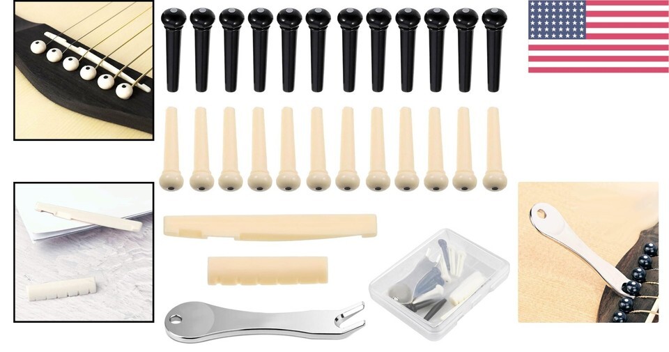 24-Pcs Acoustic Guitar Bridge Pins with Puller & Saddle - Premium Accessory Kit