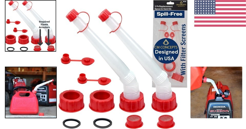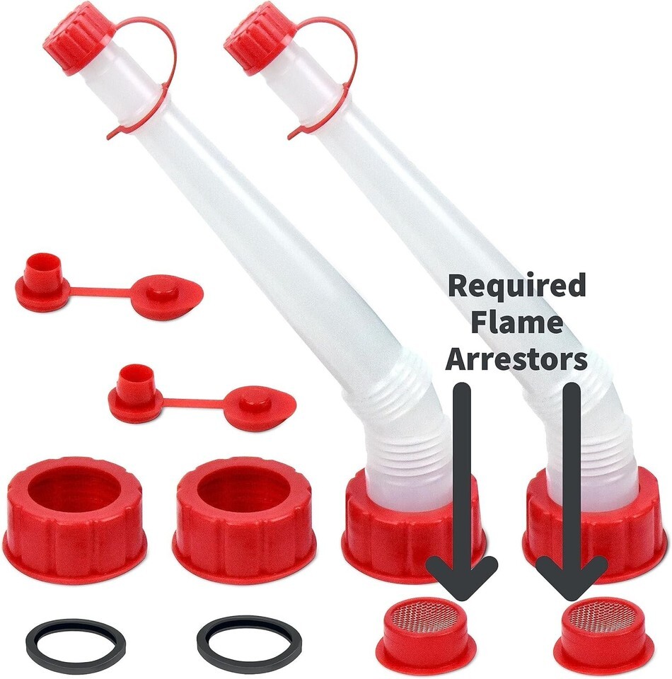 Maximum Compatibility: Crafted in the U.S. to fit most standard gas cans, with 2 styles of base caps (approx. 1.75" D) to accommodate brands like Scepter, Gott, Briggs, Blitz, Rubbermaid, and more.
