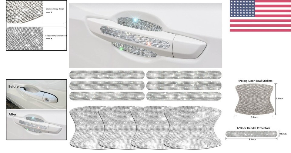 Universal Fit Rhinestone Car Door Handle Protectors - Easy Adhesive Installation