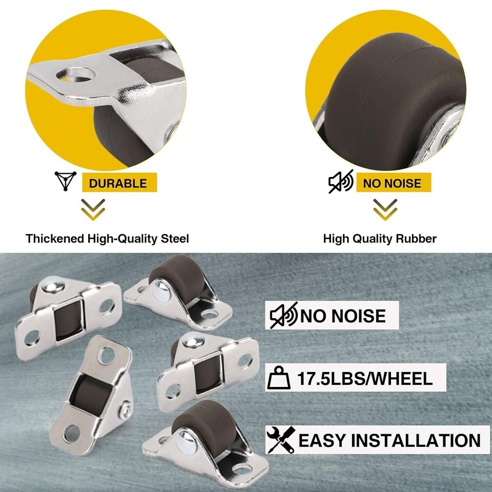 Ideal for Small Items: Perfect for DIY projects, these compact miniature wheels are designed for under-bed drawers, small sliding doors, kitchen appliances, toy chests, shoe trays, rolling drawers, storage bins, and other petite items.