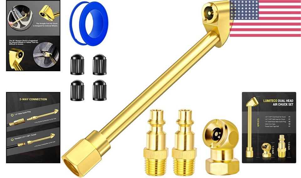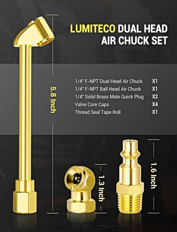 Elevate your tire inflation experience with our expertly designed Professional Dual Head Air Chuck Standard Plug Tire Inflation Kit. Crafted for durability and ease of use, this essential kit is a must-have for both professionals and enthusiasts alike.