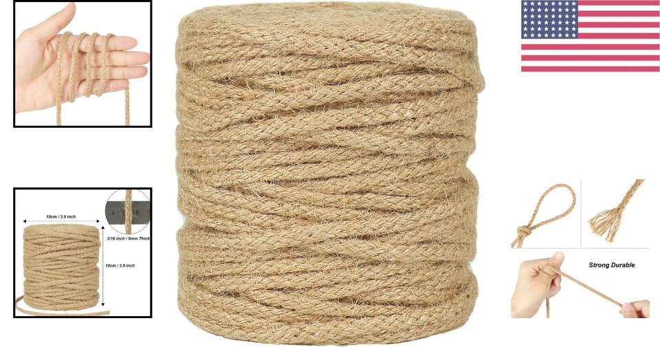 Durable 5mm Natural Jute Twine - 164ft Twine String for Holiday & Home Projects