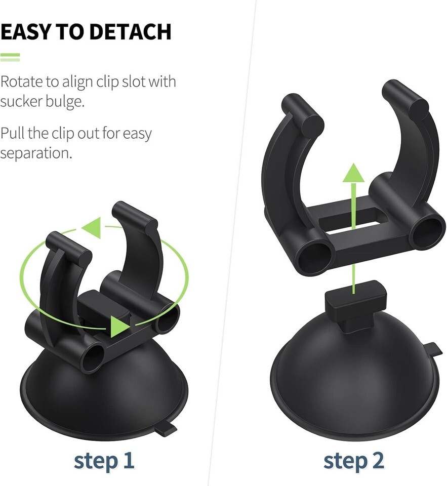 Detachable Design: Effortlessly align the clip slot with the bulge of the suction cup. Snap it into place, twist 90 to lock, and simply rotate back to remove.