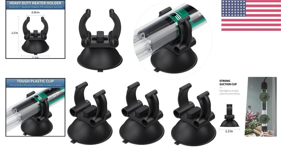 Designed for Standard Heaters: Each suction cup measures 1.3" in diameter, accompanied by a robust 0.95" clip. Ideal for holding 1" standard aquarium heaters, PVC tubing, or rain bars. (Not suitable for Airline/Air Tubing!)