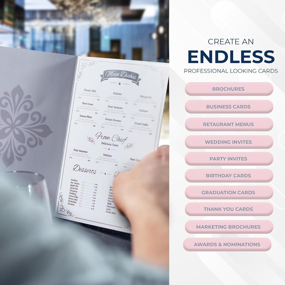 Vibrant Printing: Designed for compatibility with laser, inkjet, and copier printing, your cards will showcase colors that pop and graphics that impress.