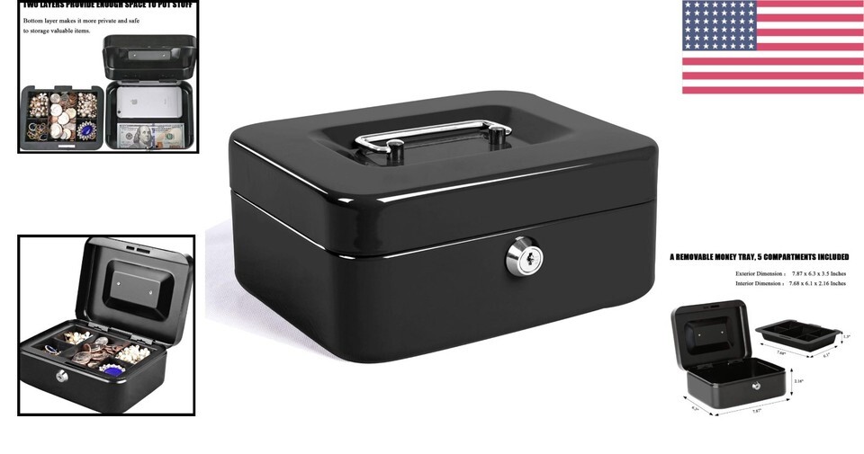 Portable Steel Lock Box with Key Control & Compartments - Ideal for Cash Storage