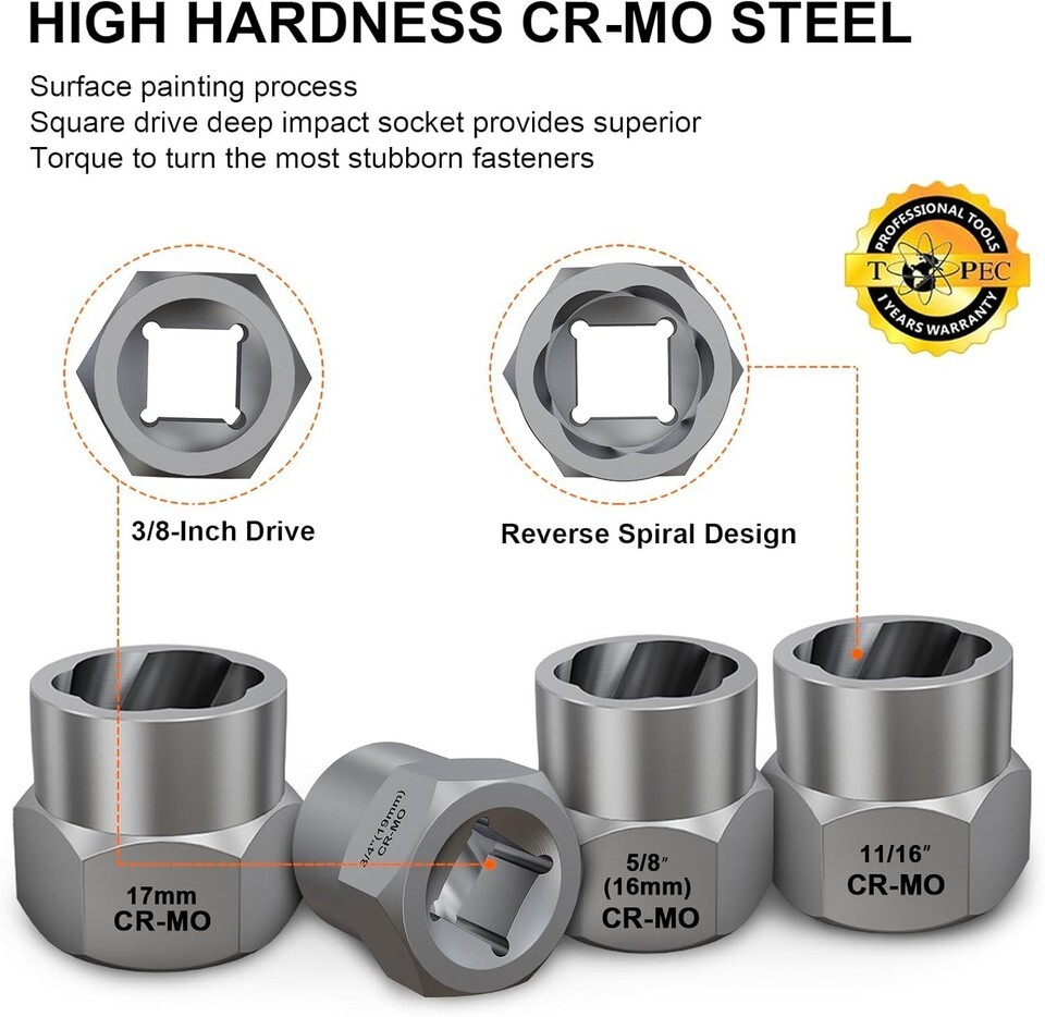 Bolt Extractor Socket Set, Impact Bolt & Nut Remover Set, Twist Socket |