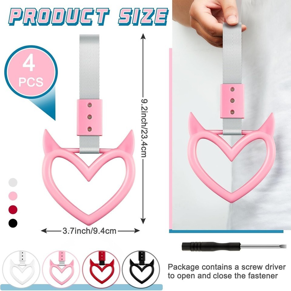 Package includes 4 pieces of heart-shaped car hand straps, perfect for usage and replacement needs.