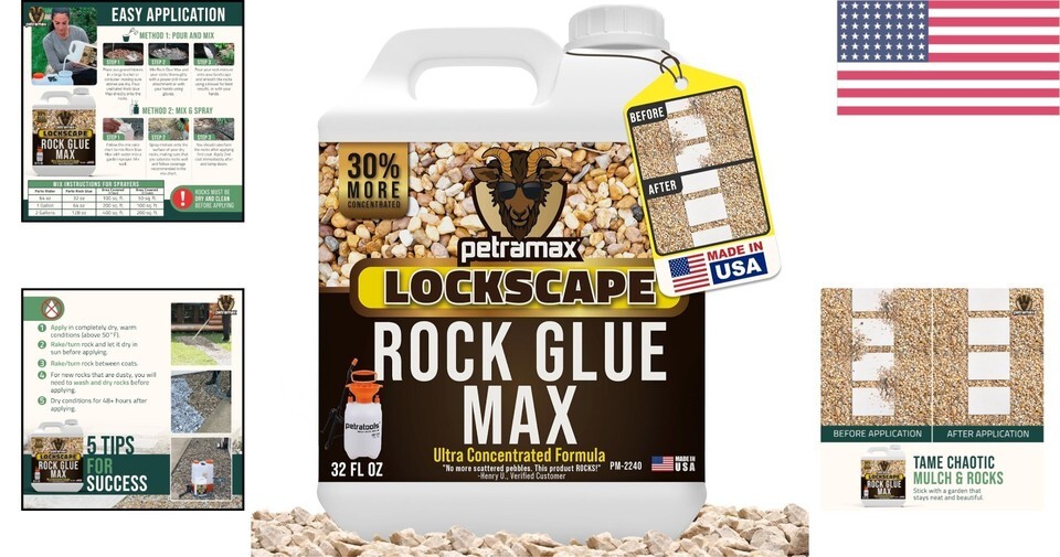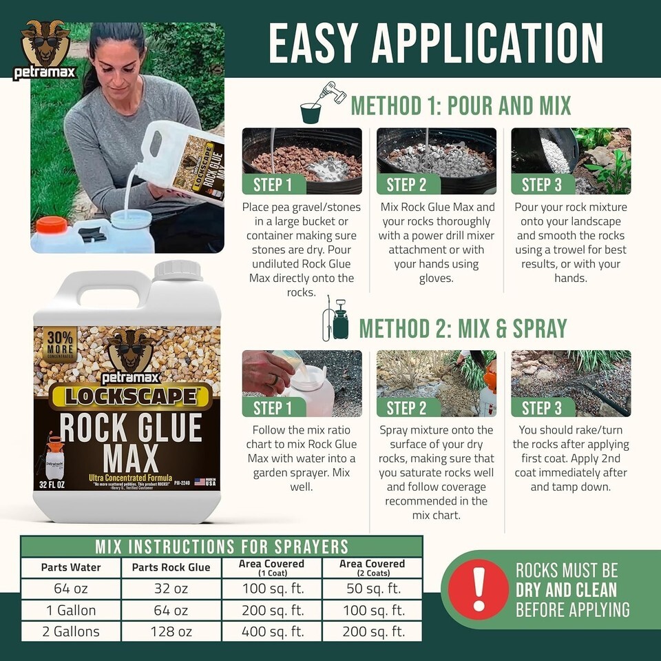 32oz Max Rock Glue - Non-Toxic Landscape Adhesive for Gravel Stones, 50 Sq Ft