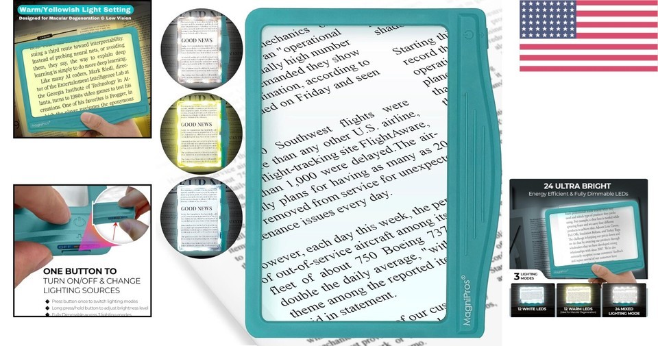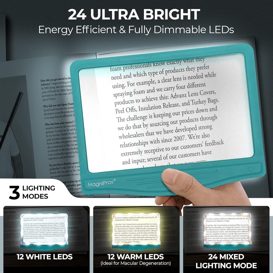 Features: With LED-Light,Anti-Glare Lens,3 Color Lighting Modes,Ergonomic Design,Lightweight,24 SMD LEDs,Hassle-Free Reading,Comfort for Aging Eyes,Ideal for Low Vision,Energy Efficient,Long-lasting LEDs