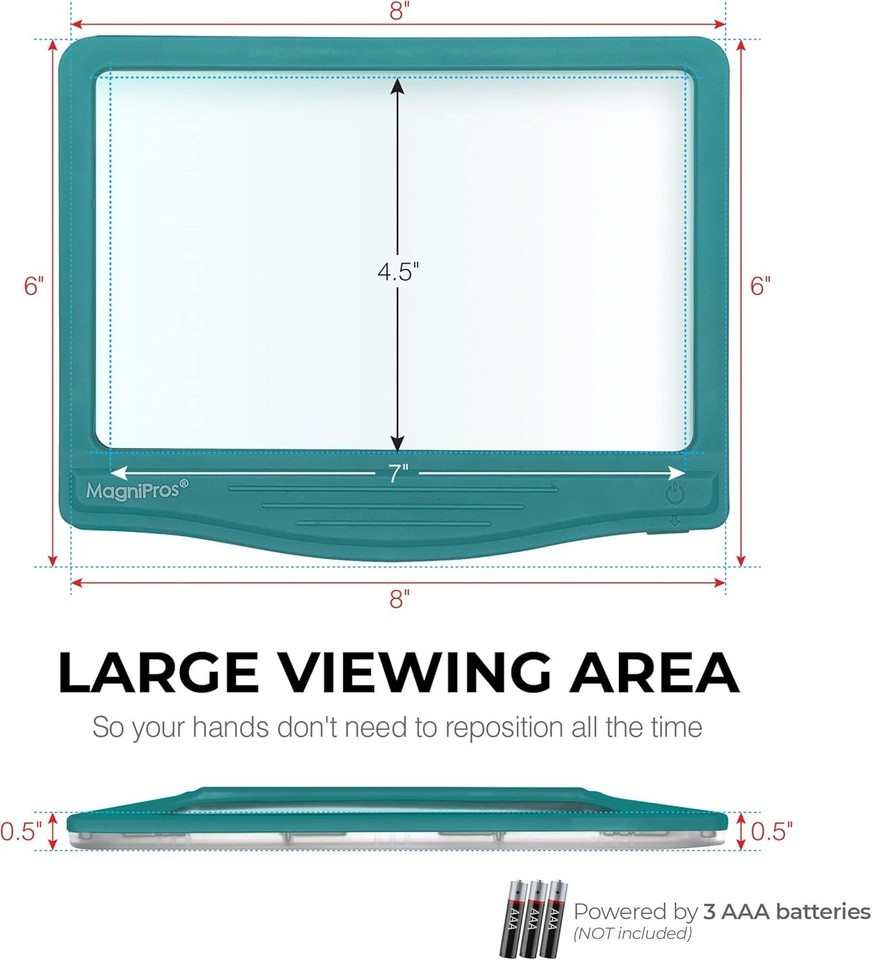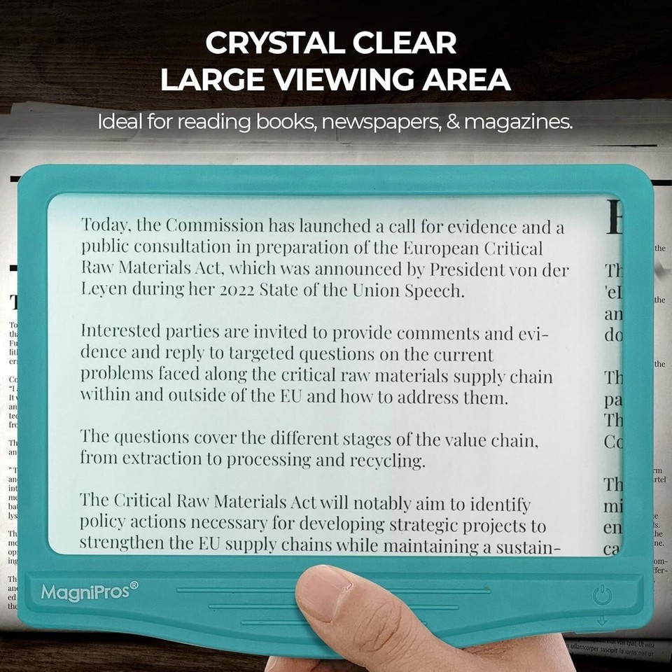 Large Crystal Clear Viewing Area: Enjoy a spacious 4.5" x 7" optical-grade acrylic lens that magnifies up to 500%, providing a hassle-free reading experience without the need for constant hand movement.
