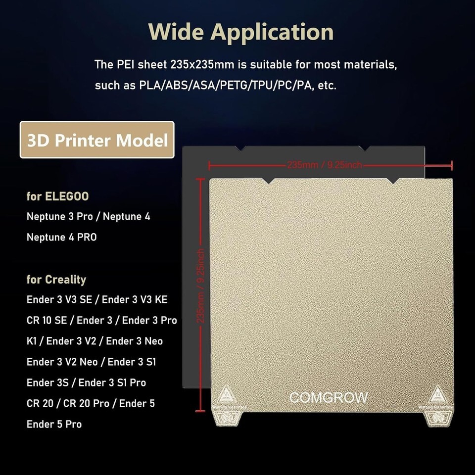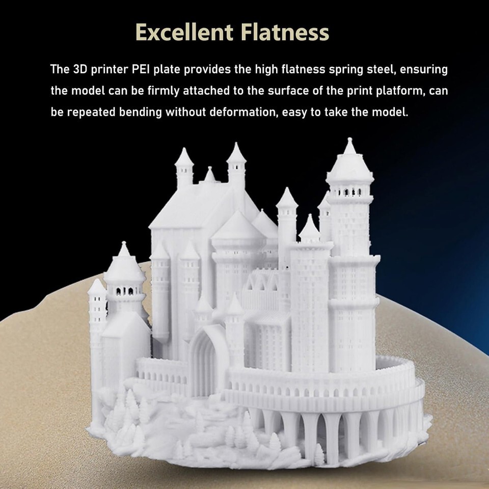 Quality PEI Coating: Made of high temperature resistant PEI coating with a frosted texture, offering exceptional abrasion resistance and durability, ensuring resistance to scratches.