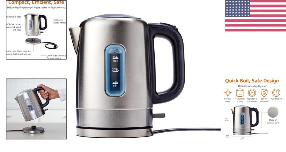 Space-Saving Design: With a compact 1.0L capacity and cord wrap system, this kettle is designed for efficient storage, making it perfect for small kitchens.