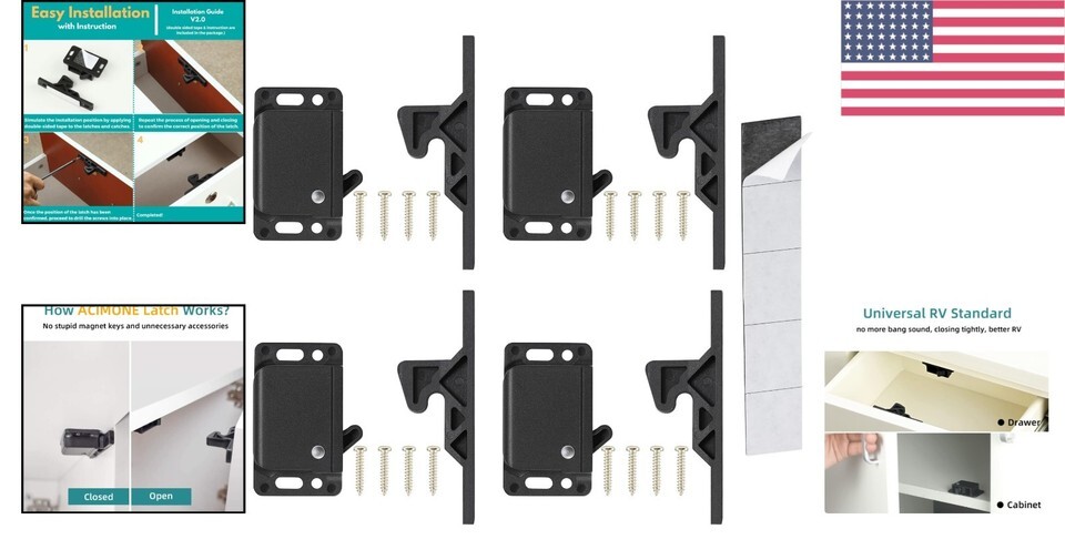 RV Drawer Latch Set - 4 Pack, Strong 10 LBS Latches with Easy Installation Kit